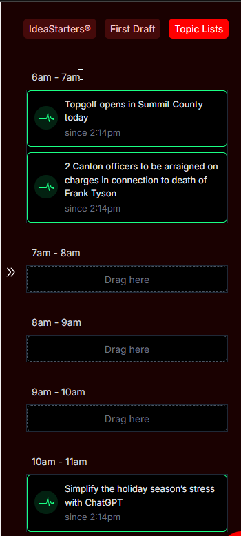 Prepping for the midday show? Simply scroll down to add stories and/or IdeaStarters™ to any hourly slot.