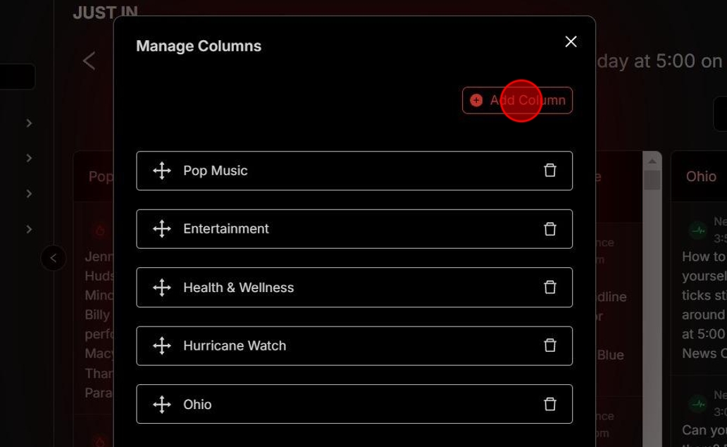 3. Next, click Add Column to add a new topic.