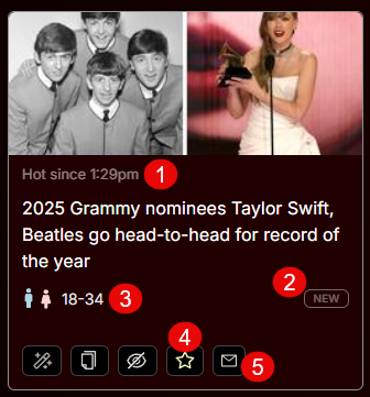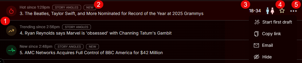 3) Demographics - Indicates with which age group and gender(s) the story is trending