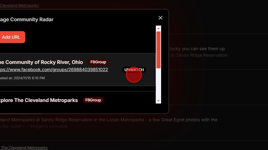 4. To add a new group, click Add URL, paste in the group's Facebook URL, and click Save.